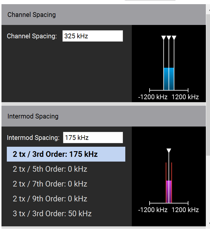 - Add frequency conflict constraints to the conflict checker including minimum allowable primary-intermodulation frequency spacing.