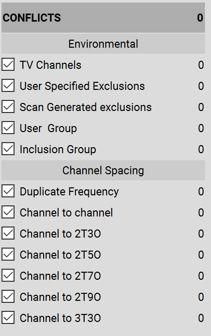 - Replication of the wireless mic inventory and frequency conflict type menus of Wireless Workbench